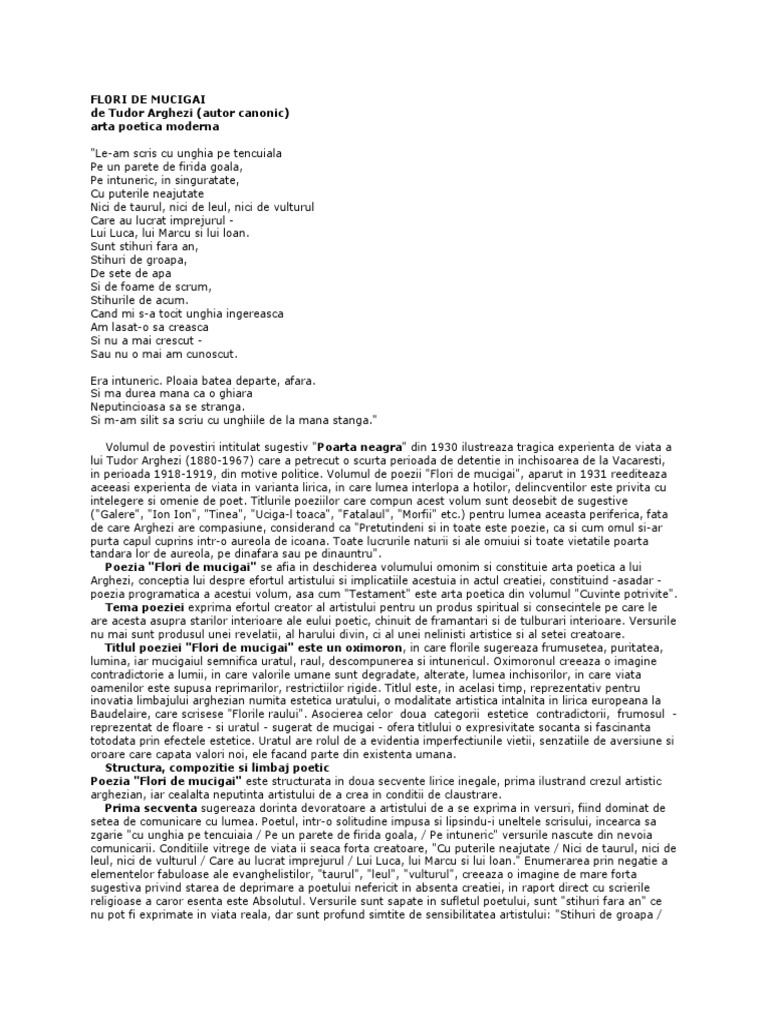 Flori De Mucigai Docx Poet Cu O Activitate Literara Indelungata Si Deosebit De Bogata Tudor Arghezi Se Inscrie Deopotriva In Traditie Si In Course Hero