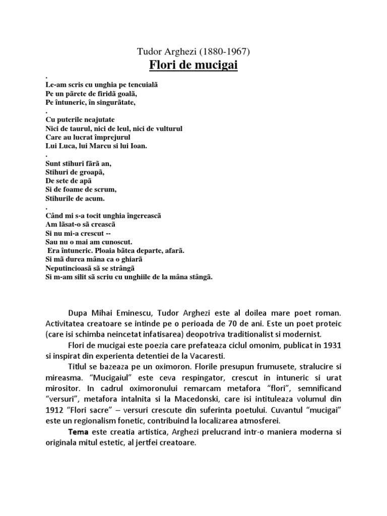 Versuri Tudor Arghezi Flori De Mucigai Docx