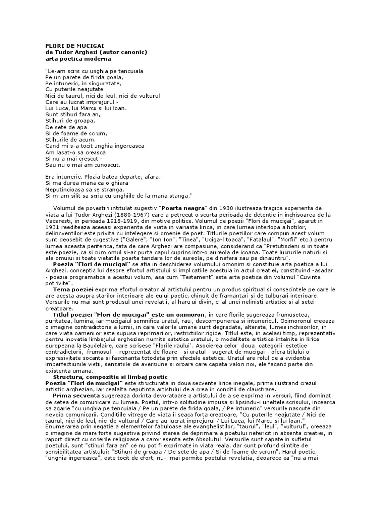 Comentarii Eseuri Bacalaureat Poezia Modernistă Flori De Mucigai De Tudor Arghezi Wattpad