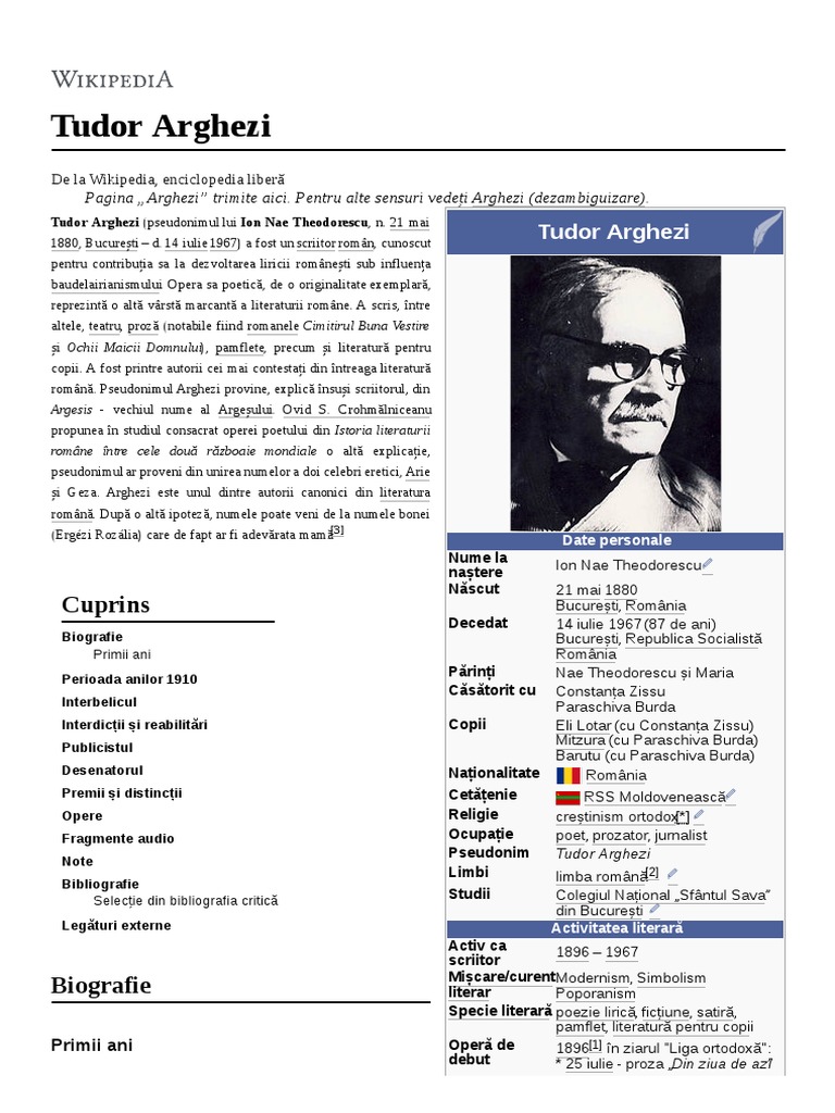Tudor Arghezi Biografie Clasa A Xii A A Cnta Tg Cărbunesti