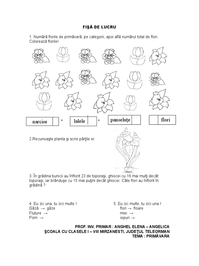 0 Fisa De Lucru Flori De Primavara