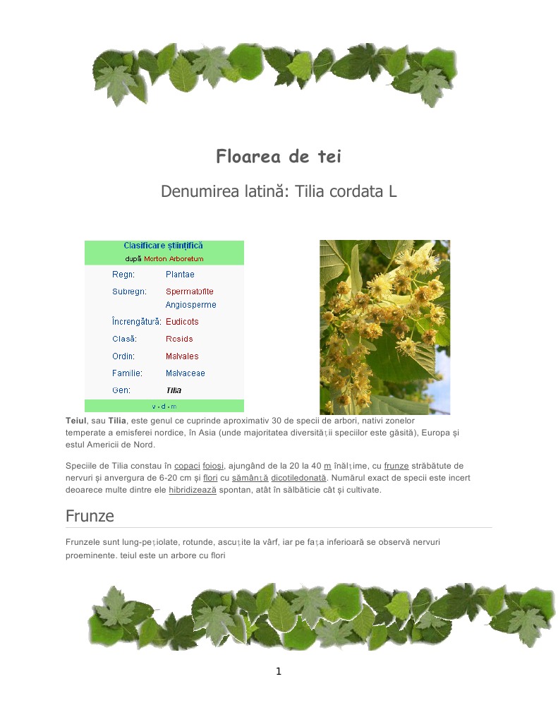 Flori De Tei Denumire Stiintifica
