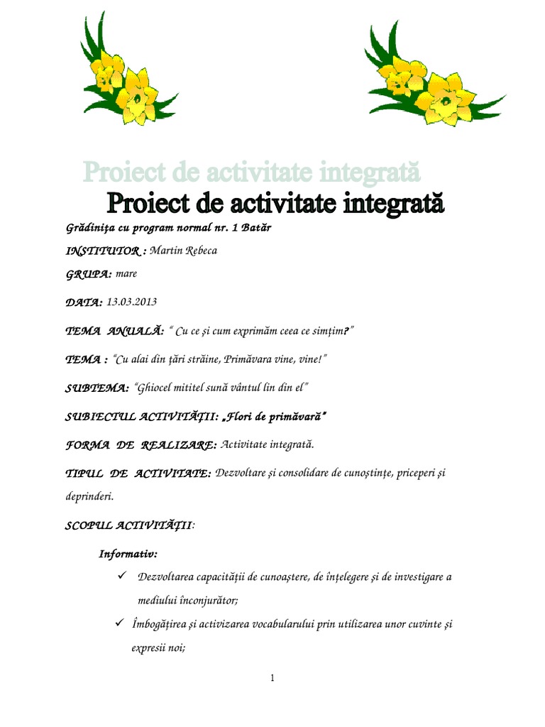 Doc Proiect De Activitate Integrată Diana Andreca Academia Edu
