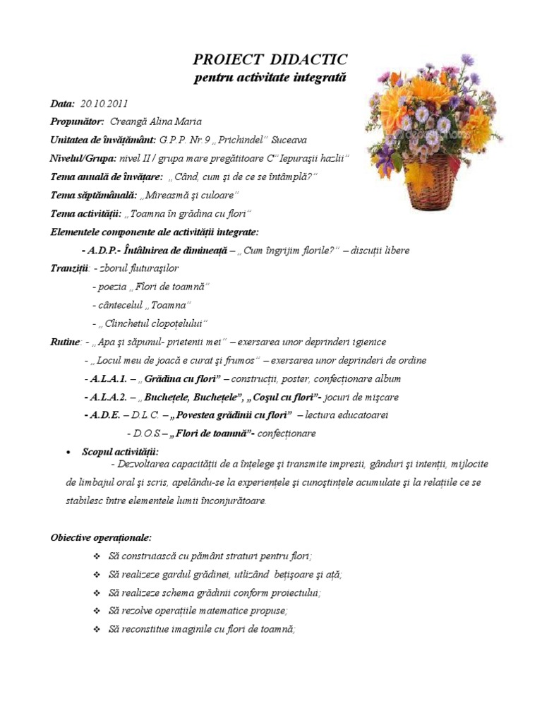 Proiect Proiect Didactic Grupa Mare Hora Florilor De Toamna Pedagogie 287287