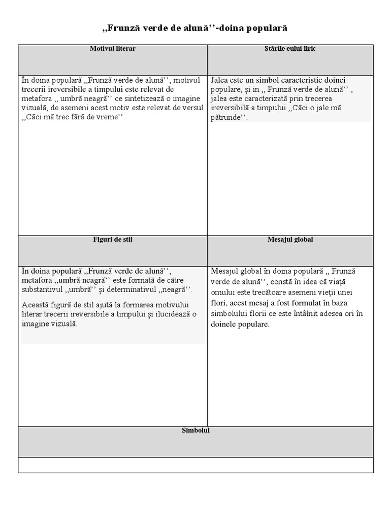 Frunză Verde De Alună Doină Populară Docx