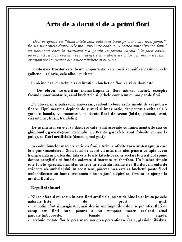 Codul Bunelor Maniere Atunci Cand Oferim Flori
