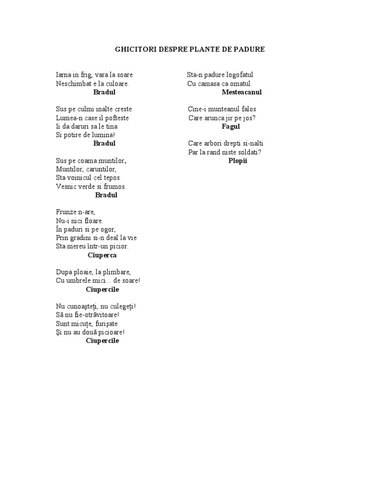 Ghicitori Despre Plante De Padure
